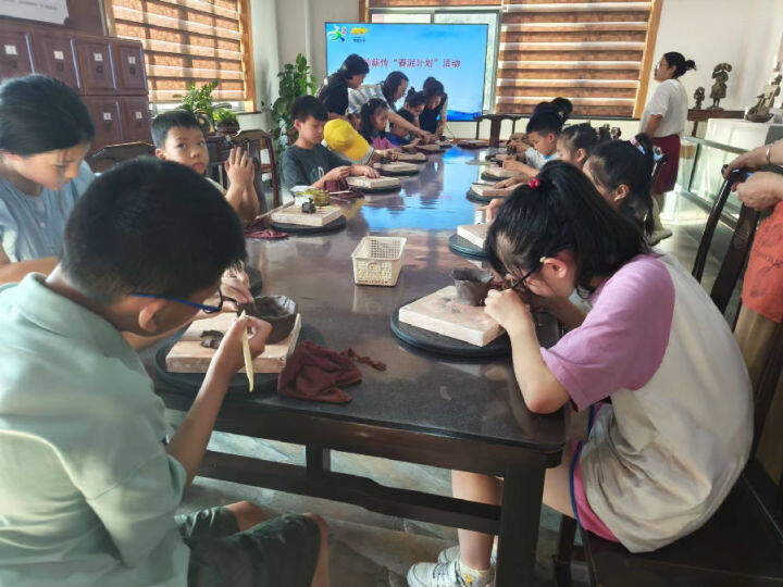 缪家村的孩子们正在手工制作泥塑(曾庆华 摄)