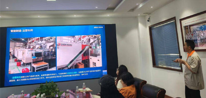嘉善三思光电技术有限公司技术经理杨顺兴(右一)介绍企业技术情况 (曾庆华 摄)