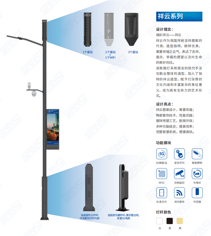 上海三思智慧路灯-祥云系列(可搭载不同基站)