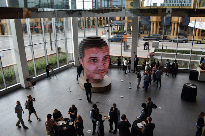 这座位于美国哥伦布市会议中心知名的3D人头面部雕塑,相信大家有所耳闻。