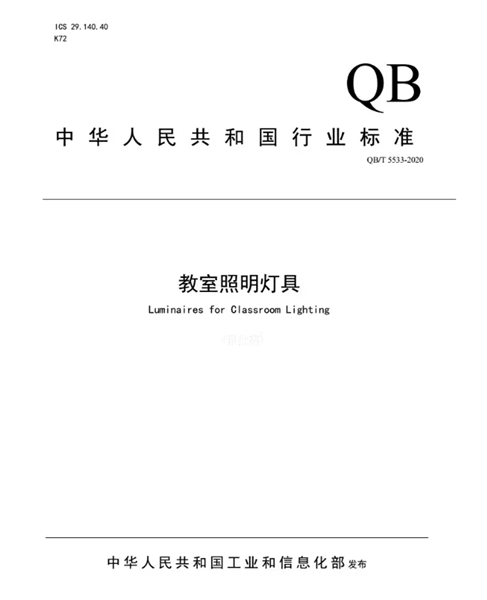 工业和信息化部2020年12月9日发布公告,新的行业标准QB/T 5533-2020《教室照明灯具》将于2021年4月1日正式实施。照明质量模拟计算的数据、运用灯具维护系数的评价方法等诸多方面成为该标准的新亮点。