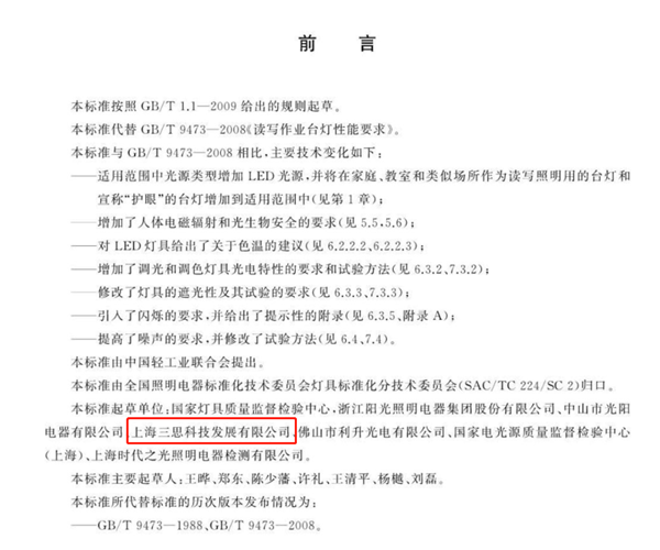 该标准由中国轻工业联合会提出,全国照明电器标准化技术委员会灯具分技术委员会(SAC/TC224/SC2))归口管理。上海三思电子工程有限公司作为该标准起草单位之一,相关提议与解决方案被委员会认同并采纳,为在全国推动健康教室照明的普及尽自己最大的努力。