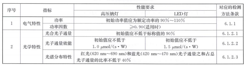规范中,规定了温室植物补光灯的术语和定义、基本要求、质量要求、检测方法和检测规范,对高压钠灯或LED灯等适用植物补光灯具的性能做了具体要求。