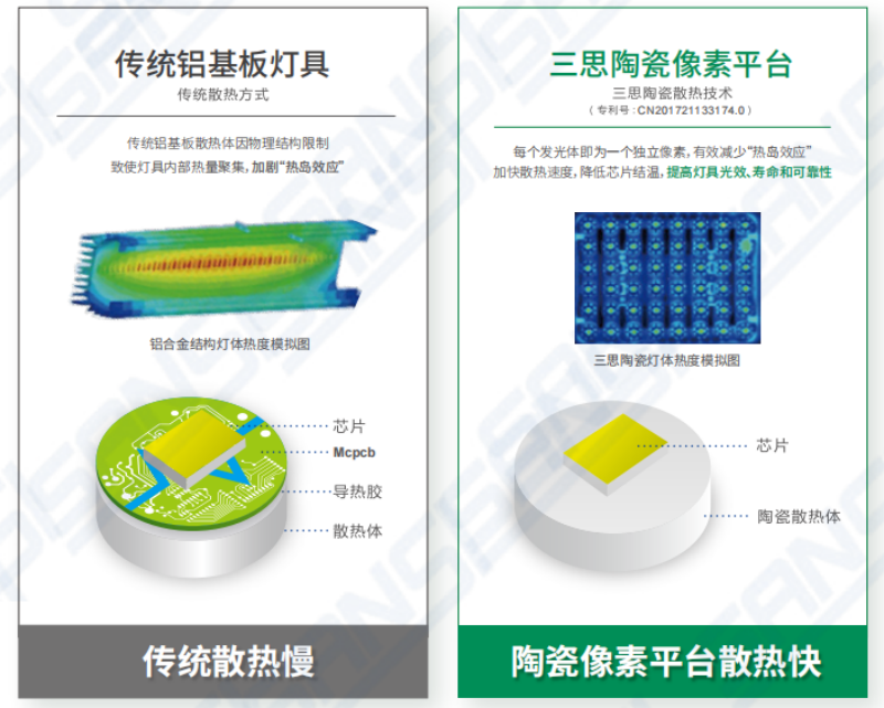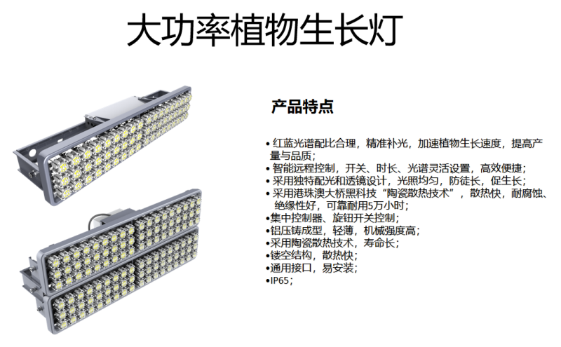 规范中要求灯具外壳应具防尘、防水性能,三思植物补光产品达到或超过IP65防护等级,在封闭潮湿的环境中运行自如。更为重要的是三思LED植物生长灯不同于传统铝基板灯具,它采用陶瓷散热技术,将LED芯片直接贴在陶瓷上,热量通过空气对流直接散发,散热性能高于传统Mcpcb LED灯具,光衰速度慢,使用寿命可达50000小时。