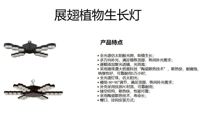上海三思在植物照明应用中,先后开发了大功率植物生长灯、三思展翅植物生长灯等一系列植物补光产品,为设施农业提供一站式植物照明解决方案。
