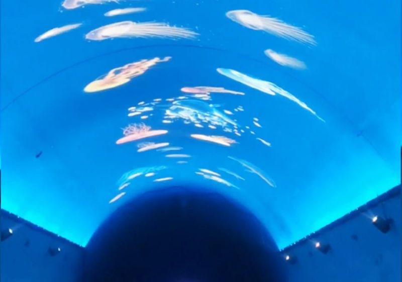 木寨岭隧道全线合理设置了4段处特殊灯光带,每段长200米,借助不同的灯光和图案变化,通过LED智慧景观照明以及控制系统组合,“蓝天白云”、“宇宙星空”“海底世界”“春节元素”“甘肃飞天元素”等主题和自然景象在隧道内呈现,改变隧道内单调的视觉感,缓解驾驶员的视觉疲劳,不但进一步提升驾乘安全,也成为穿林过壑的打卡地。