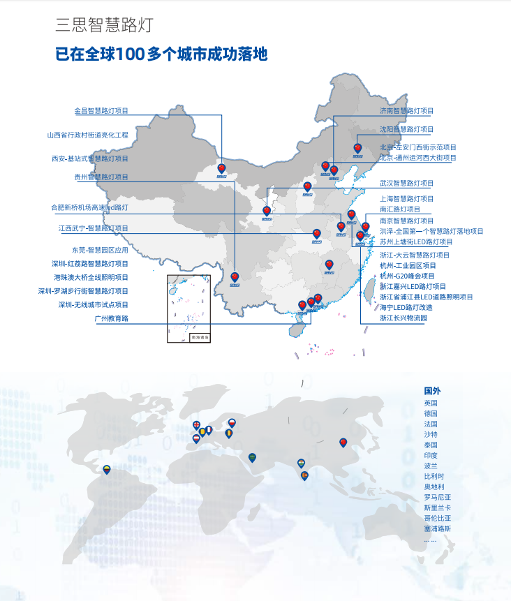 截至目前,三思智慧路灯系统已成功应用全球100+城市,上海三思将继续凭借自身强大的系统集成解决方案能力,根据各城市、街区、景区、园区等应用环境的需求及特点,提供个性、系统和综合的服务,助力构建和谐有序的道路空间,为人民群众提供有序、安全、干净、美观的城市环境。