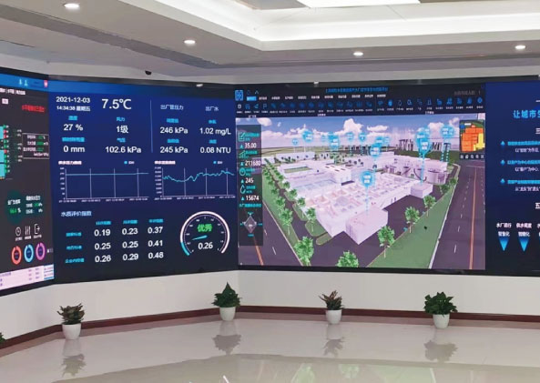 上海南市水厂率先建设了上海市的“数字水厂”,而该水厂的数字孪生水厂系统通过上海三思为其定制的智慧LED可视化大屏加以呈现。大屏能够实时展示生产业务数据、水质监测数据、物联感知数据等关键数据,动态展现水质变化情况,通过降低设备故障率、提升管控精准度等方式提高水质的稳定性、市民用水体验、水厂能源的供水压力稳定性及碳减排优势。三思智慧LED可视化大屏还能够呈现各类业务场景,助力管理者实现更加精确的决策。