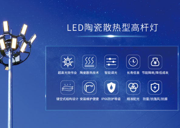 随着照明技术不断的发展与进步,对于“空中照明”——超15米高杆灯产品的要求也越来越高。高杆灯可以满足城市广场、车站、港口码头、货场、机场、体育场等场所的照明应用,作为“空中照明”核心应用产品,其对于夜间照明安全保障有着非常重要的作用。