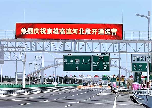 着力打造便捷舒适高效畅行、安全耐久品质示范、绿色生态资源节约、智能运维车路协同、路域经济协同发展“京雄高速以准全天候、精准化的出行服务和科学决策、智能管控的综合管理为主线“综合运用北斗高精定位、窄带物联网、大数据、人工智能、自动驾驶等新一代信息技术”提供车路协同、准全天候通行、全媒体融合调度、智慧照明、综合运维公众化等智能服务。
