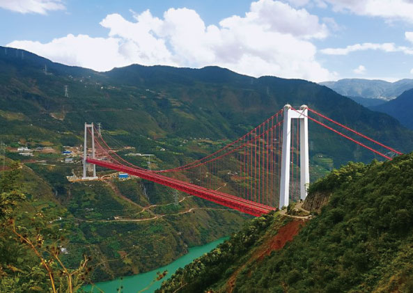 在山区峡谷跨径、桥梁缆索吊跨径、桥梁宽跨比等诸多方面都创造了新纪录,桥面为双向四车道高速公路/相关报道及图片来源于网络上海三思为这座超大跨径山区峡谷悬索桥,金安金沙江大桥(图片来源于网络)尤其是三思自主研制的LED低位照明护栏灯,很好地解决了大桥护栏钢梁结构的照明难题。4000余套低位照明灯具与护栏融为一体,兼顾舒适照明、简易安装、简洁美观等要求。
