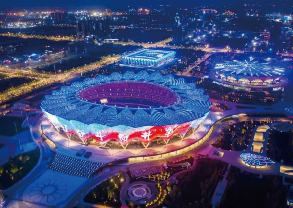 公司动态 /2021-09-15西安,古称长安、京兆,举世闻名的世界四大古都之一,是中华文明的发祥地,是丝绸之路的起点。位于西安市国际港务区灞河之畔,“盛世之花”——西安奥体中心璀璨绽放。“一场两馆”成为第十四届全国运动会的开闭幕式以及主要赛事的举办主场地,在十三天里将向世人呈现精彩赛事