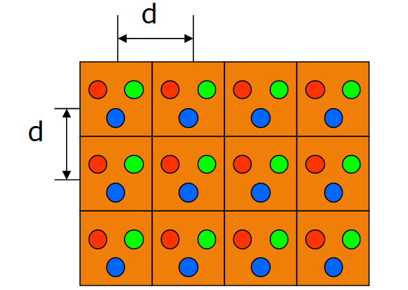 点间距,相邻两个像素点之间的中心距离;像素密度,每平方米显示屏上的像素个数。