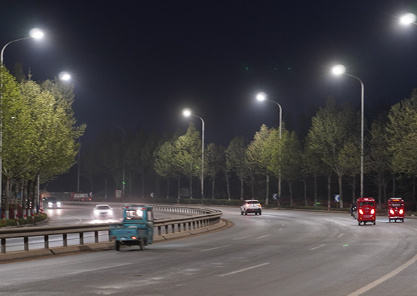三思道路照明LED陶瓷散热路灯高效布灯模式:根据不同位置路段采用单臂、双臂灯杆形象布局,照度均匀,光效更高,节能环保。陶瓷散热技术散热更强,性能更稳定,寿命更长;同时避免传统铝基板因紧固件受振动影响而留下隐患。