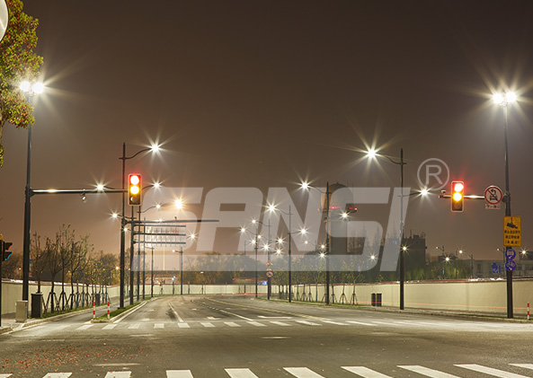 三思道路照明LED陶瓷散热路灯高效布灯模式:根据不同位置路段采用单臂、双臂灯杆形象布局,照度均匀,光效更高,节能环保。陶瓷散热技术散热更强,性能更稳定,寿命更长;同时避免传统铝基板因紧固件受振动影响而留下隐患。