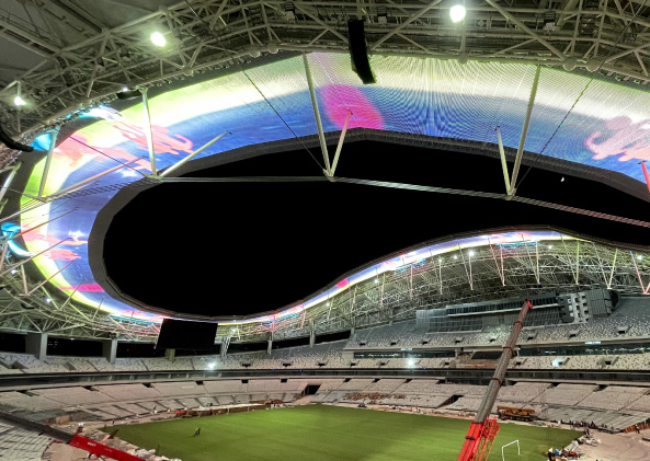 该专项弧形定制共261平米,为三思户外商显XS全彩系列, 高亮度,高对比度,色彩真实,160度广角视域即使在很远的距离范围内也能很清晰的看到显示平面所播放的内容,且无色差。这么多年来,三思在户外商显领域也积累了丰富的经验,能够根据客户的具体需求专项设计定制专项方案,满足客户实际的关切。