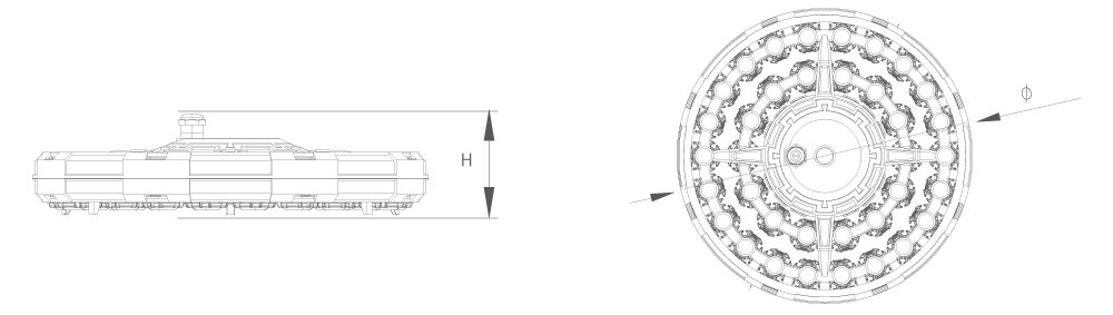 | C2300-CE-150W | 176 ~ 264 VAC 50/60Hz | ≥ 80 | 30º/60º/90º/120º | PC + 陶瓷像素 | 挂钩 / 吊杆 / 吊链 | 常亮/DALI/0-10V | Φ310*H78.5mm | 约2.1KG |