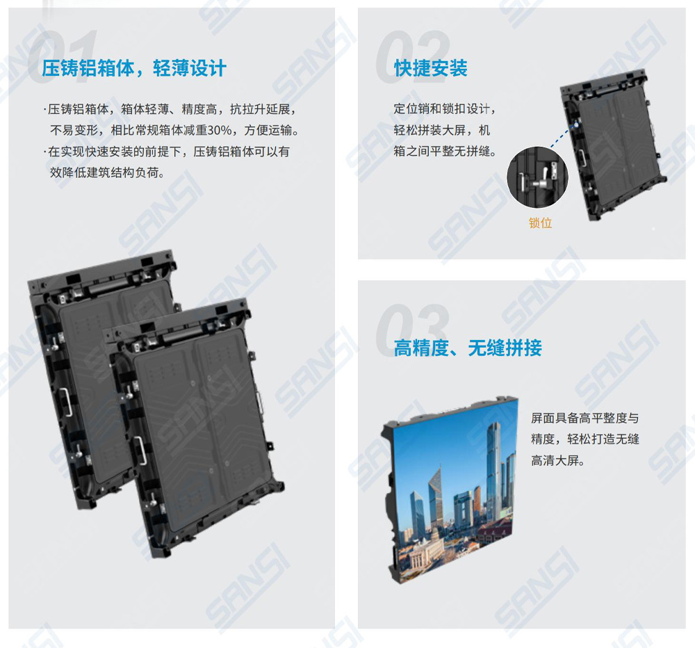 定位销和锁扣设计,轻松拼装大屏,机箱之间平整无拼缝