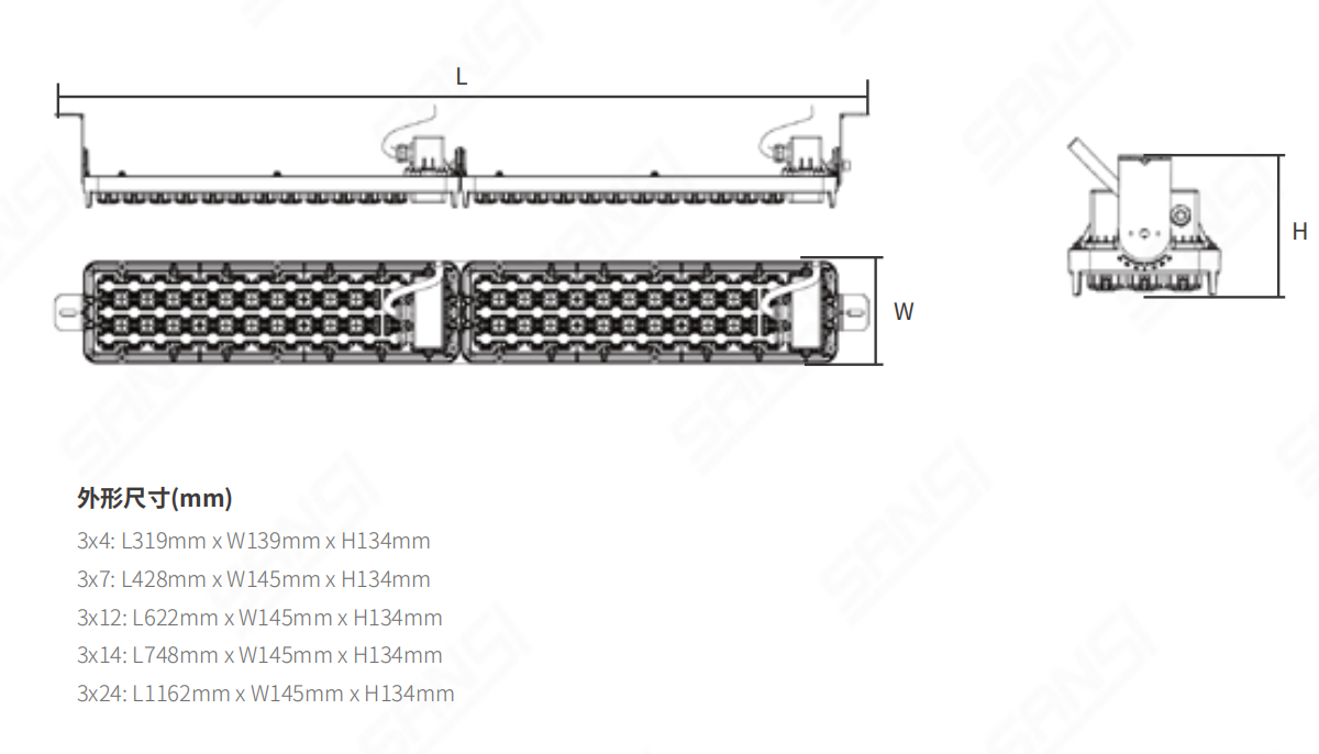 | 不调光/RS485/PWM/0~10V/0~5V/PLC | 铝本色RAL9006 | L70 125000小时(环境温度在25℃)* | -40℃~+55℃ |